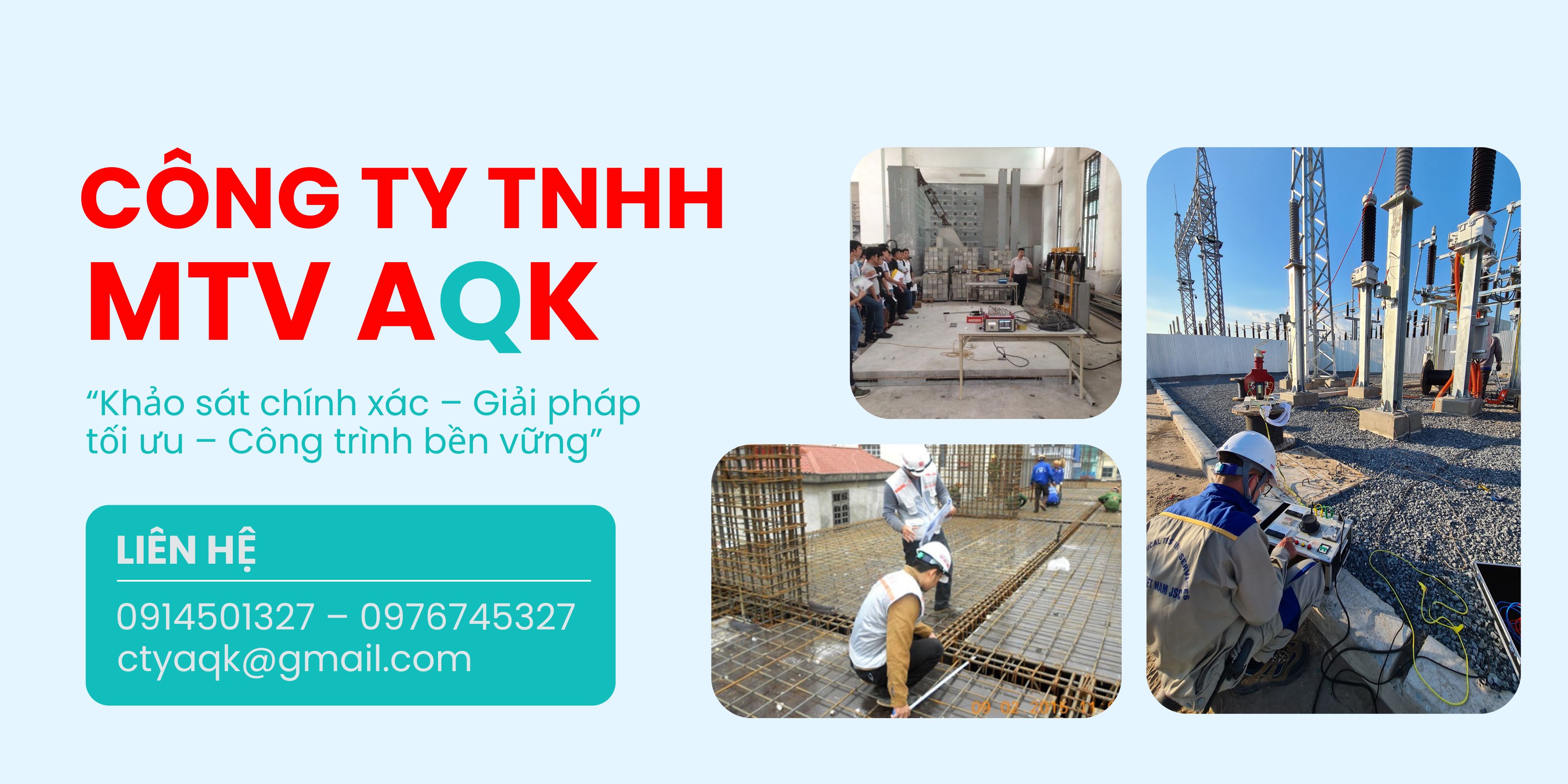 Công ty TNHH MTV AQK là doanh nghiệp hoạt động trong lĩnh vực tư vấn và dịch vụ kỹ thuật xây dựng. Công ty cung cấp các dịch vụ như: khảo sát địa hình – địa chất; kiểm định, thí nghiệm chất lượng công trình; tư vấn thiết kế, thẩm tra, giám sát; quản lý dự án, lập dự toán và tư vấn môi trường cho các công trình xây dựng.
